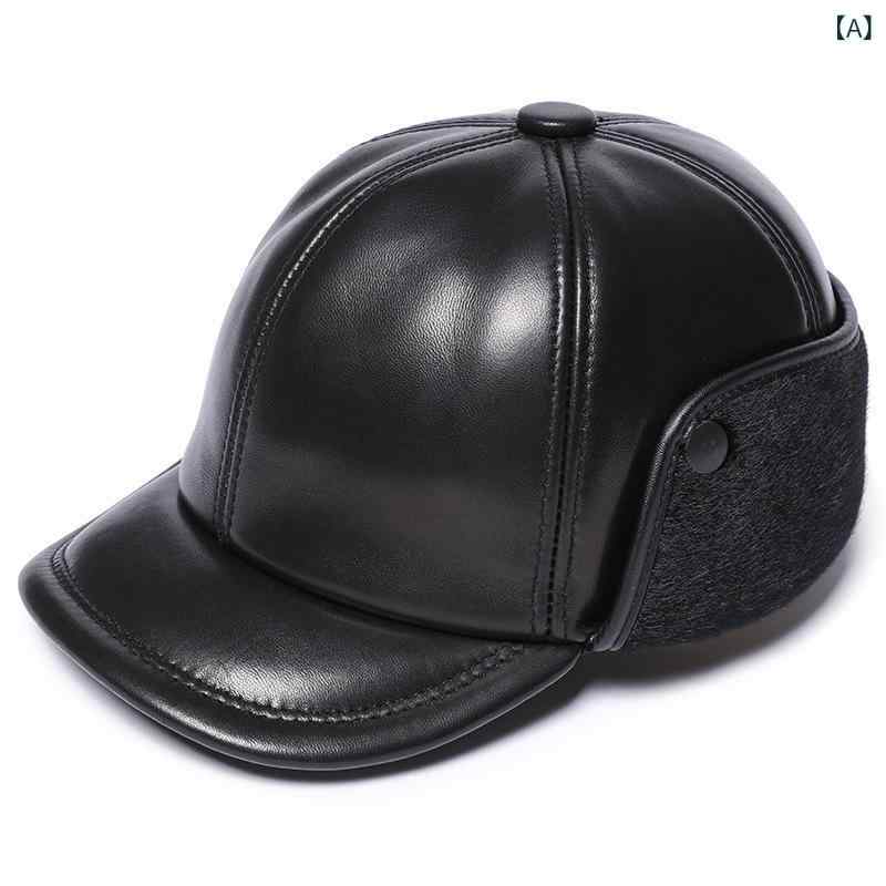 キャップ メンズ 男性用 牛革 本革 レザー 中高年 シニア ミリタリー風 防寒 防風 保温 耳当て・・・