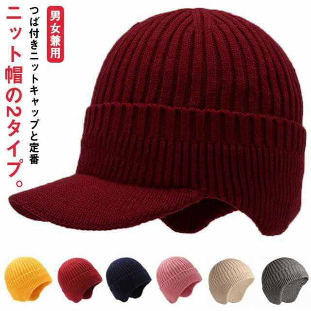 帽子 メンズ 2タイプあり ニット帽 つば付き ニットキャップ キャスケット レディース 男女兼用 ・・・