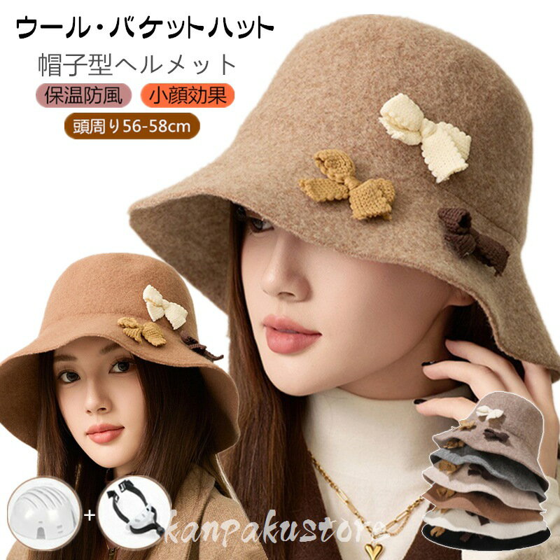 バケットハット レディース 帽子 ウール 防寒 ヘルメット 自転車 ウールハット おしゃれ uv つ・・・