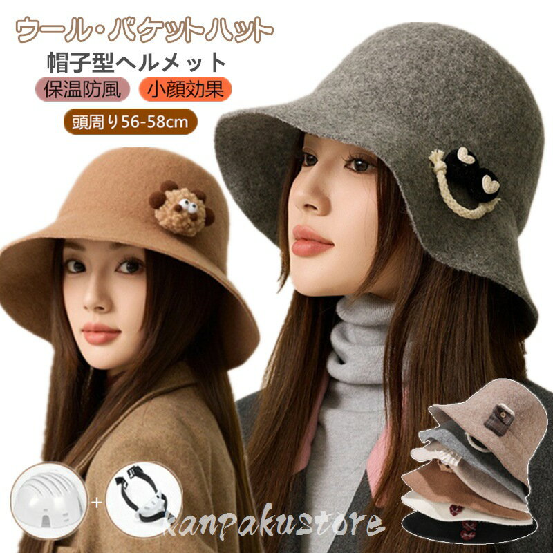 バケットハット レディース 帽子 ウール 防寒 ヘルメット 自転車 ウールハット おしゃれ uv つ・・・