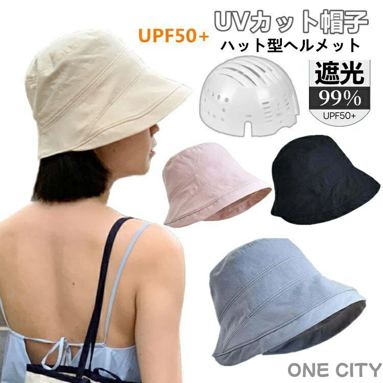 帽子 UVカット 完全遮光 つば広 レディース ハット 帽子型ヘルメット 遮光100% アウトドア ・・・