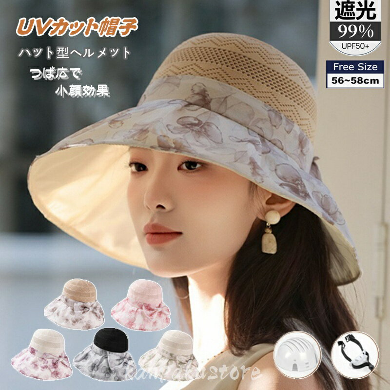 帽子 UVカット レディース ハット 帽子型ヘルメット 完全遮光 つば広 遮光100% アウトドア ・・・