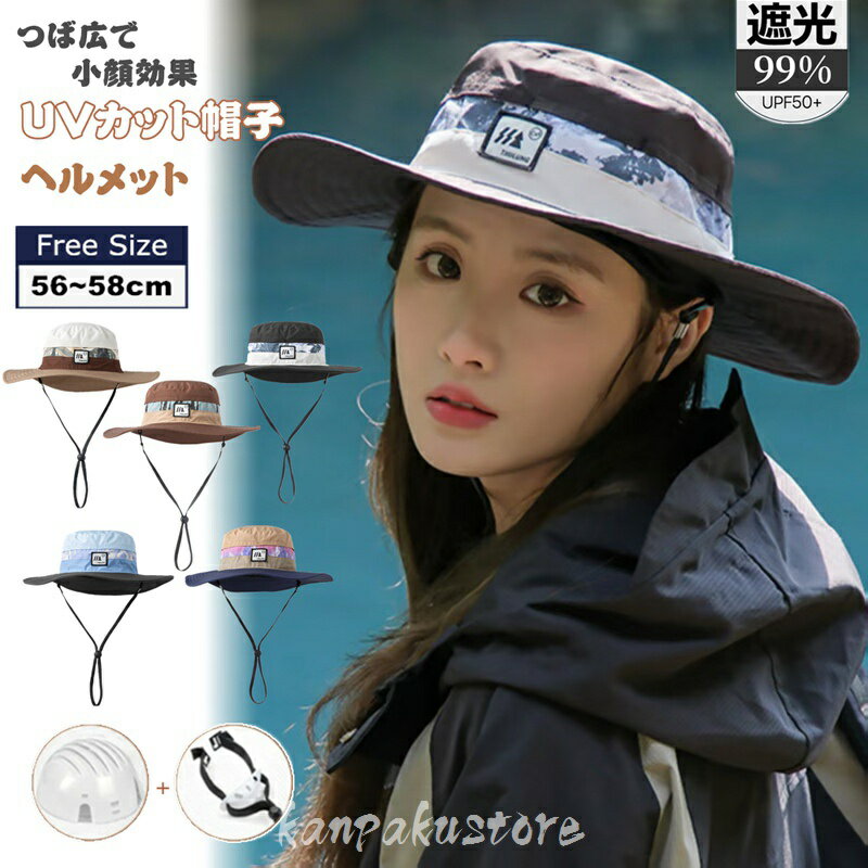 帽子 レディース メンズ UVカット 帽子型ヘルメット 完全遮光 遮光100% つば広 アウトドア ・・・
