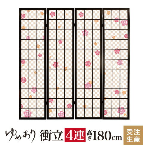 衝立 和風 梅香る 幅45cm×高さ180cm×4連 木製 ついたて 間仕切り パーテーション おし・・・