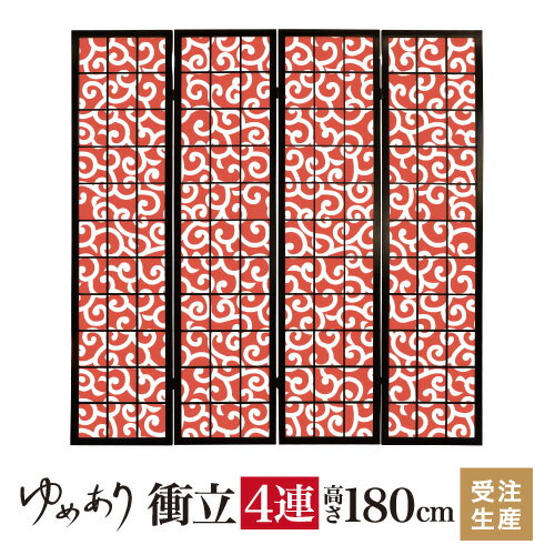 衝立 和風 唐草 赤茶 幅45cm×高さ180cm×4連 木製 ついたて 間仕切り パーテーション ・・・
