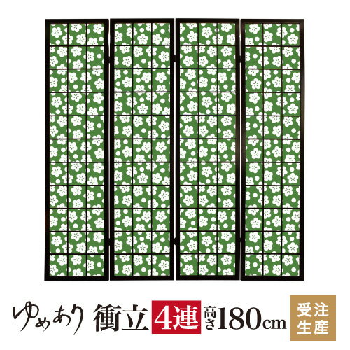 衝立 和風 梅花 緑青 幅45cm×高さ180cm×4連 木製 ついたて 間仕切り パーテーション ・・・
