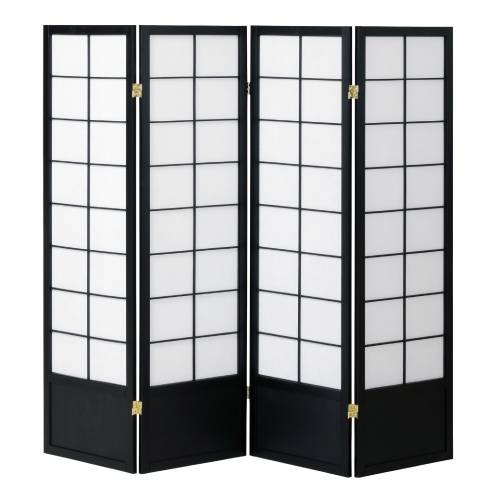 和風衝立 / パーテーション 4連 【ブラック】 幅450×奥行20×高さ1800mm×4枚 木製 ・・・
