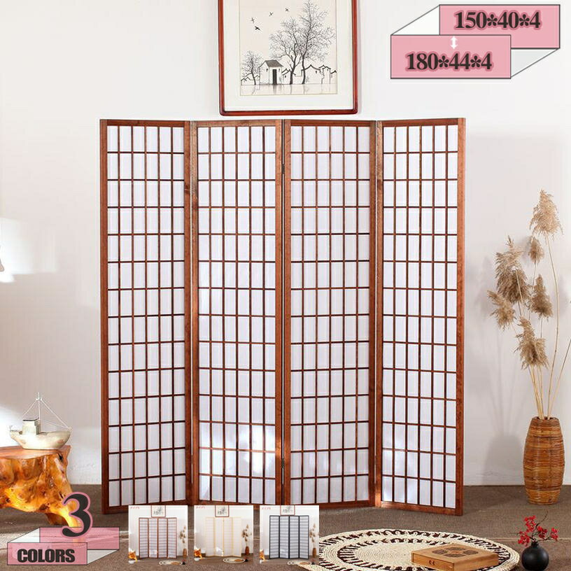送料無料!おしゃれな障子紙を使った和風 4連 衝立 木製 間仕切り おしゃれ 屏風 障子 柄 目隠し パーテーション ついたて