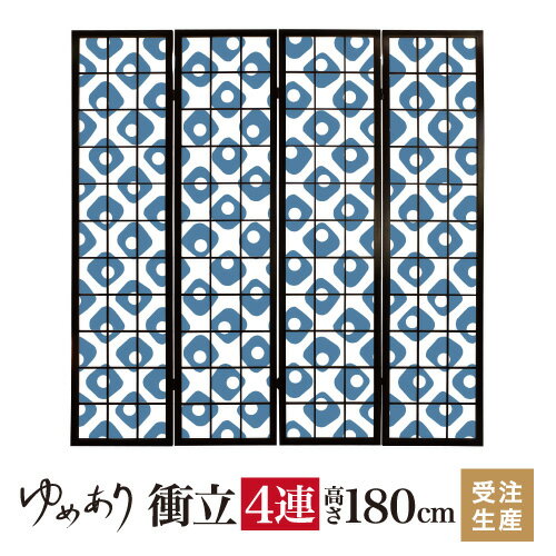衝立 和風 鹿の子 紺碧 幅45cm×高さ180cm×4連 木製 ついたて 間仕切り パーテーション・・・