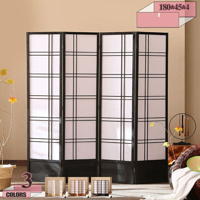 送料無料!おしゃれな障子紙を使った和風 4連 衝立 木製 間仕切り おしゃれ 屏風 障子 柄 目隠し パーテーション ついたて