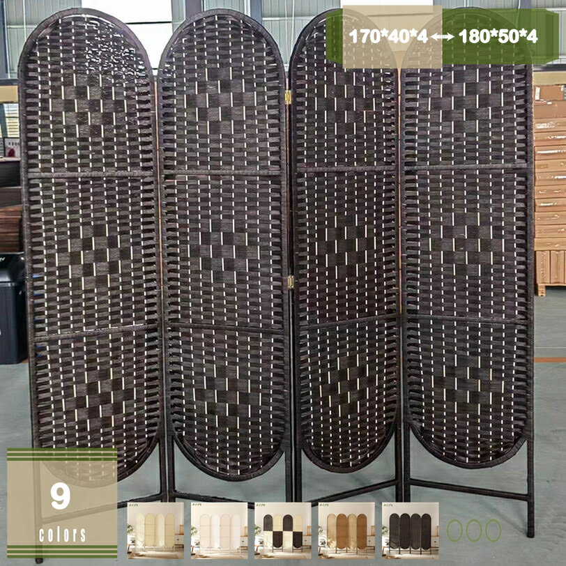 パーテーション 間仕切り 4連タイプ ついたて スクリーン 高さ180cm 折りたたみ 紙織り 手作り 自立式 インテリア 屏風 目隠し 移動便利 リビング キッチン 部屋 和室 玄関 オフィス