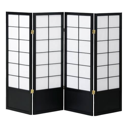 枠が黒塗りの4枚折の簾屏風です。 中央・脚部に透かし彫りが施されています。 送料無料です!