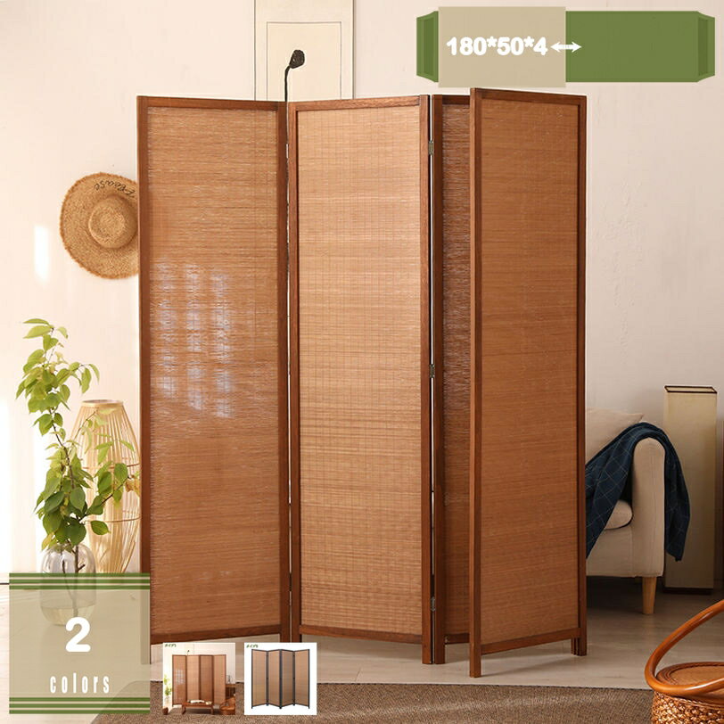 天然木のフレームにラタンの編み込みが美しいスクリーン。3連タイプ。