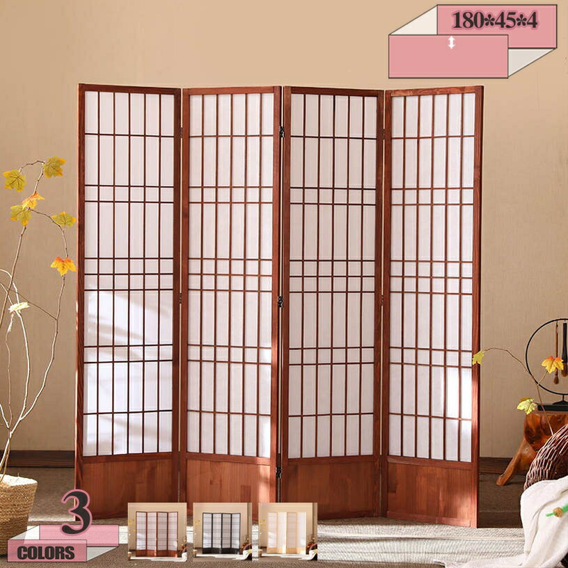 送料無料!おしゃれな障子紙を使った和風 4連 衝立 木製 間仕切り おしゃれ 屏風 障子 柄 目隠し パーテーション ついたて