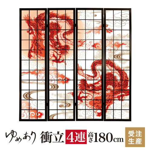 衝立 和風 赤龍 幅45cm×高さ180cm×4連 木製 ついたて 間仕切り パーテーション おしゃ・・・