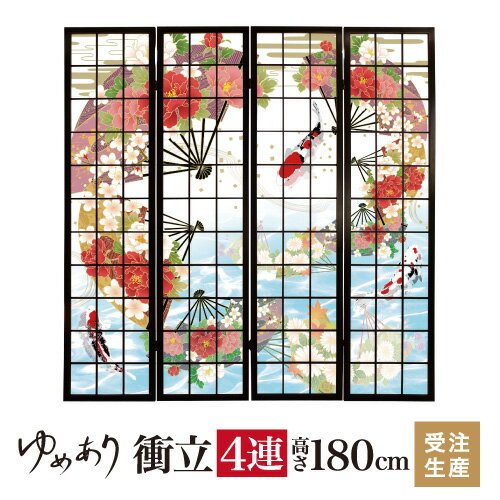 衝立 和風 華扇と鯉 幅45cm×高さ180cm×4連 木製 ついたて 間仕切り パーテーション お・・・