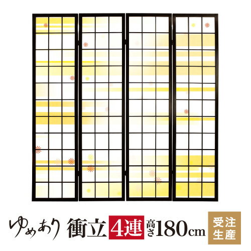衝立 和風 風 イエロー 幅45cm×高さ180cm×4連 木製 ついたて 間仕切り パーテーション・・・