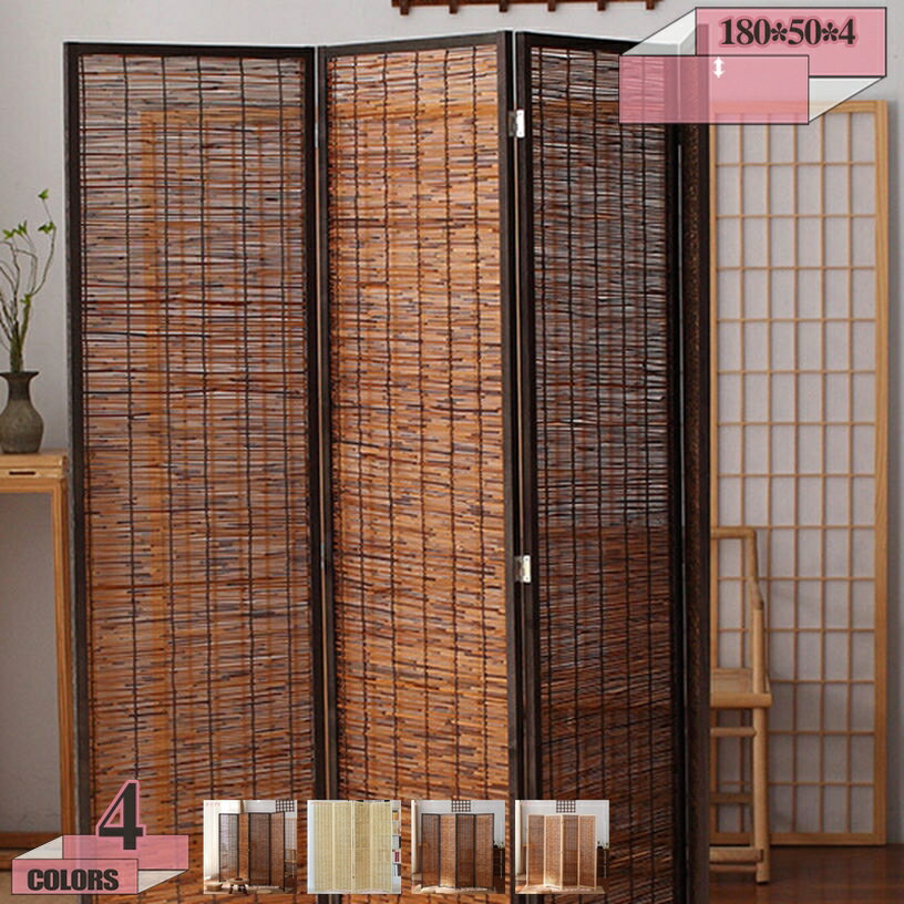 パーテーション 間仕切り 折りたたみ 4連 ついたて衝立 高さ180cm 天然木フレーム 葦編み 持・・・