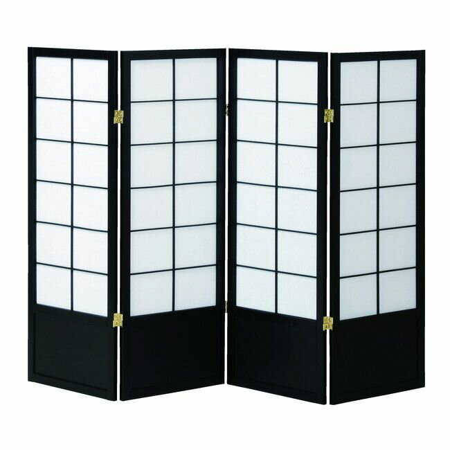 和風衝立/パーテーション 4連 【ブラック】 幅450×奥行20×高さ1200mm×4枚 木製 スチ・・・