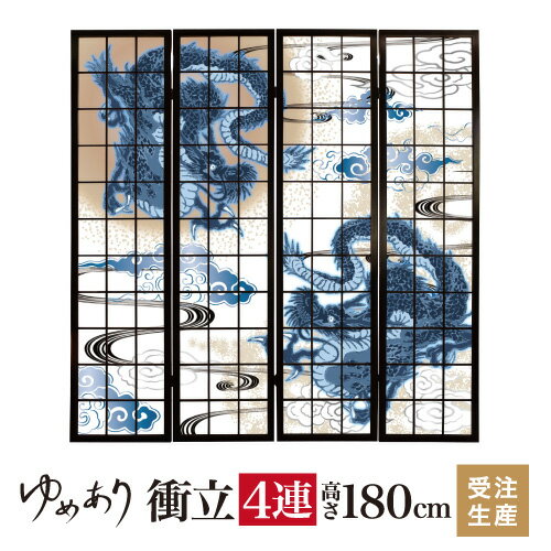衝立 和風 青龍 幅45cm×高さ180cm×4連 木製 ついたて 間仕切り パーテーション おしゃ・・・