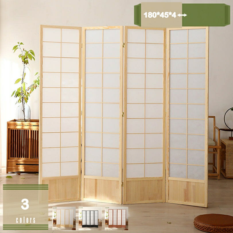 パーテーション 間仕切りスクリーン 折りたたみ 木製 4連 高さ180cm 仕切り屏風 ついたて 和風衝立 インテリア 目隠し 組立不要 リビング キッチン 部屋 和室 玄関 オフィス 事務所