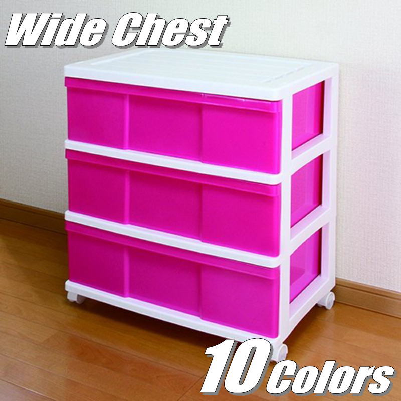 完成品 全10色 衣装ケース 収納ケース 収納ボックス 引き出し プラスチック ワイドチェスト 3段・・・