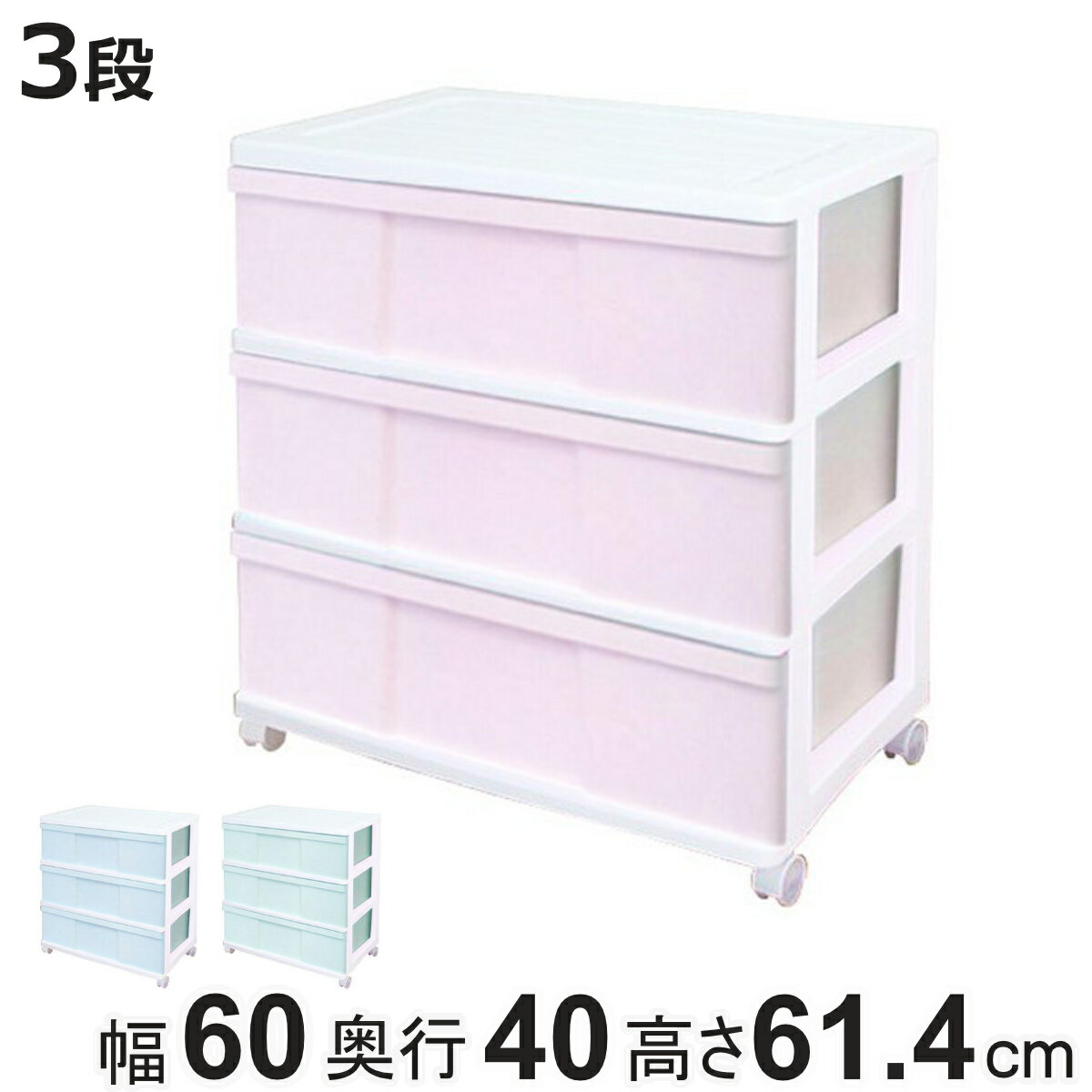 チェスト ワイド 収納ケース 3段 キャスター付き パステルカラー 幅60×奥行40×高さ61.4c・・・