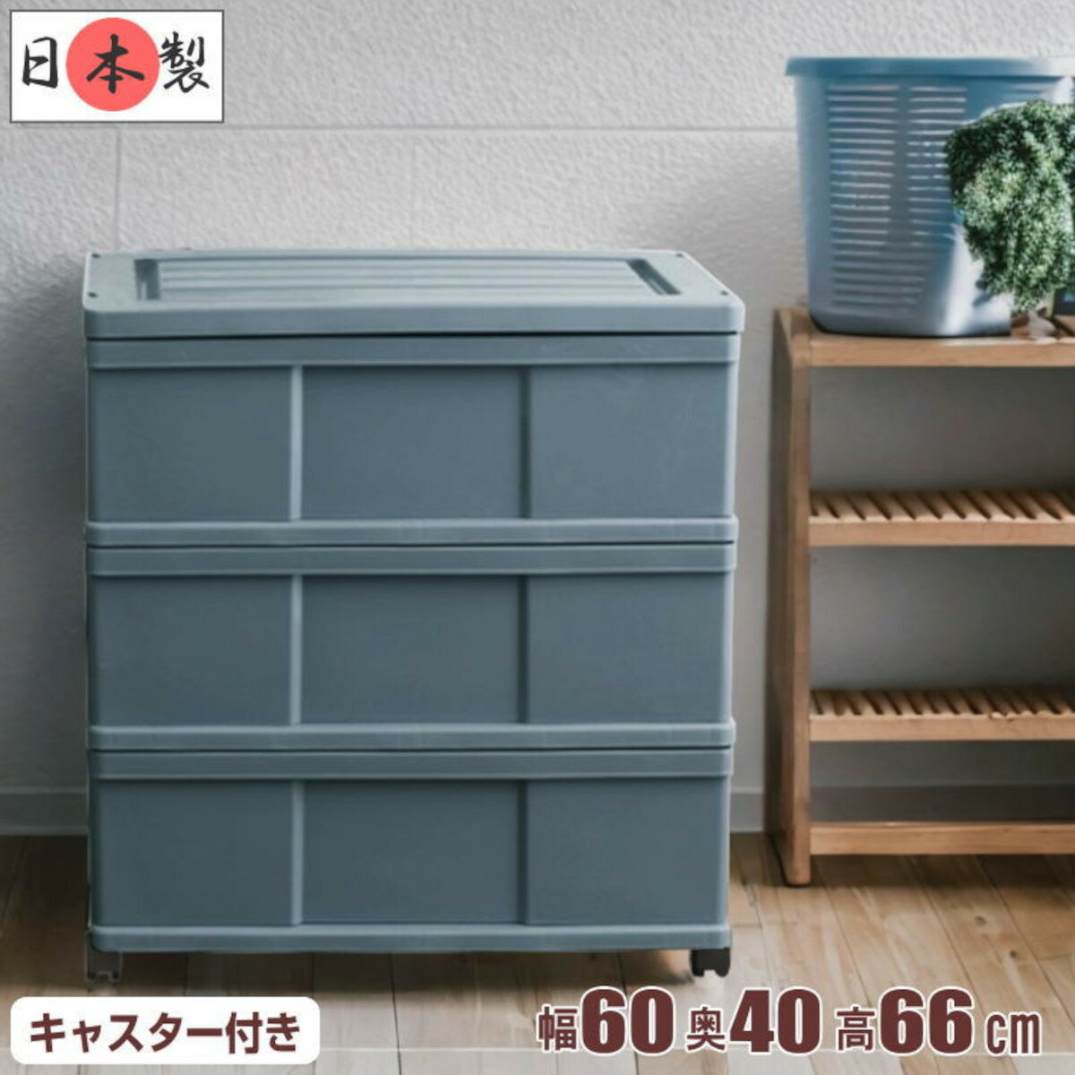 チェスト 収納棚 ワイド 3段 キャスタータイプ ダークグレー 日本製 国産 プラスチック 移動楽々・・・