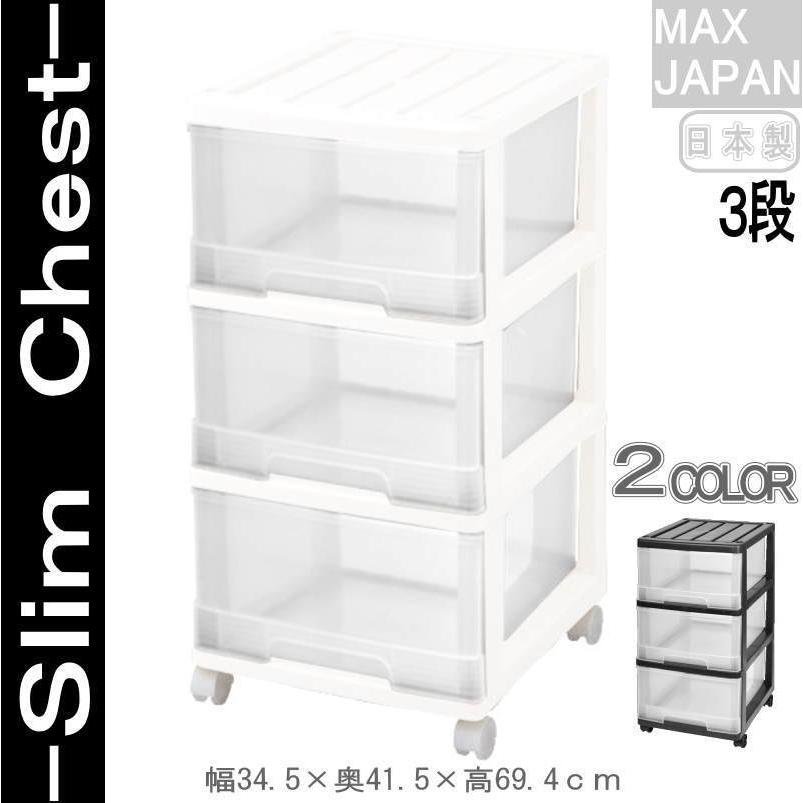 チェスト 完成品 3段 キャスター付き プラスチック スリム ローチェスト 幅39 奥行74 高さ6・・・