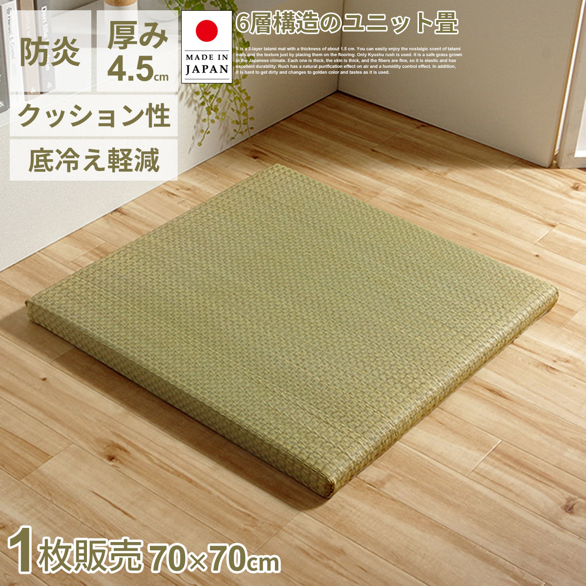 国産 い草 置き畳 70×70cm 厚み4.5cm 1枚 日本製 ユニット畳 簡単 置くだけ 滑りに・・・