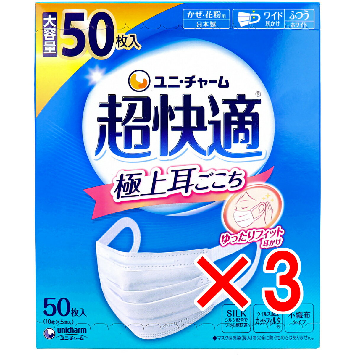 【 まとめ買い3個セット 】 超快適マスク 極上耳ごこち かぜ・花粉用 ホワイト ふつうサイズ 50・・・