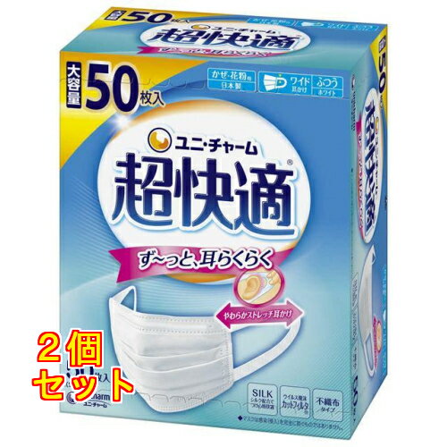 【送料込・まとめ買い×2個セット】ユニ・チャーム 超快適マスク 極上耳ごこち ふつう 50枚入 ホワ・・・