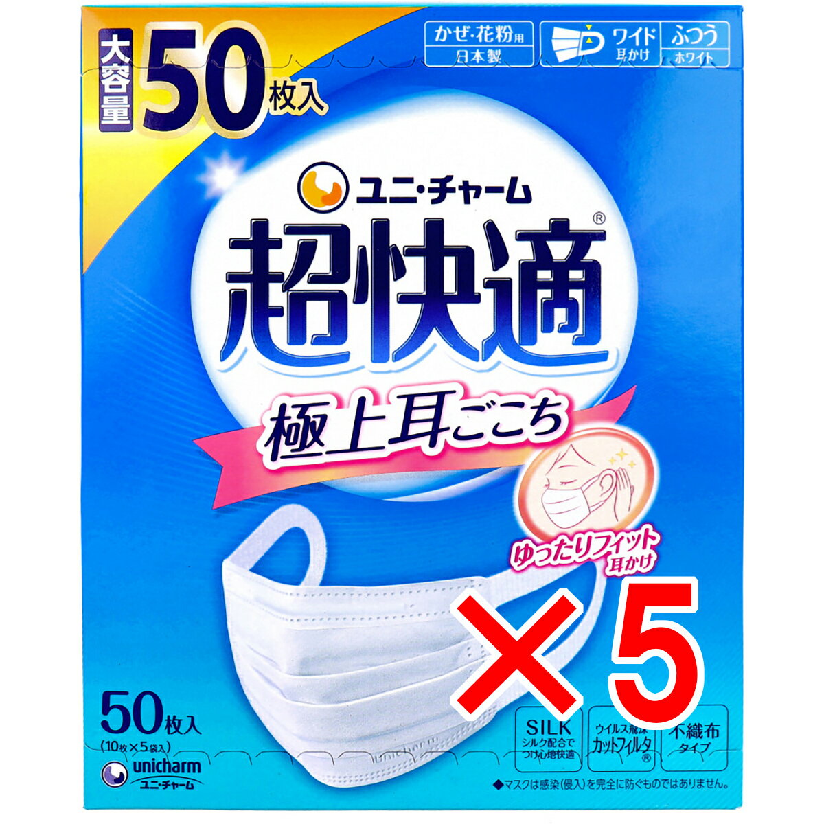 【 まとめ買い5個セット 】 超快適マスク 極上耳ごこち かぜ・花粉用 ホワイト ふつうサイズ 50・・・