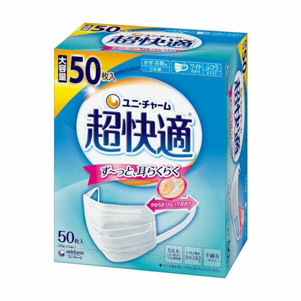 ユニチャーム 超快適マスク やわらかストレッチ耳かけで、ず っと、耳らくらく!更に、本物シルク配合で、つけ心地なめらか かぜ 花粉症予防 不織布 ウイルス 飛沫カットフィルタ