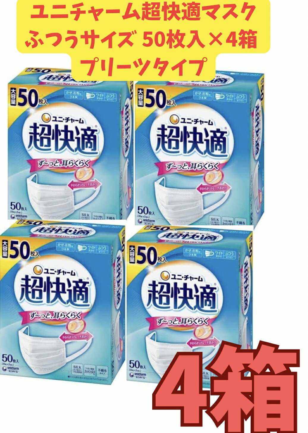 【まとめ売り4箱・送料無料】超快適マスク 極上耳ごこちふつう 50枚×4箱セット・・・