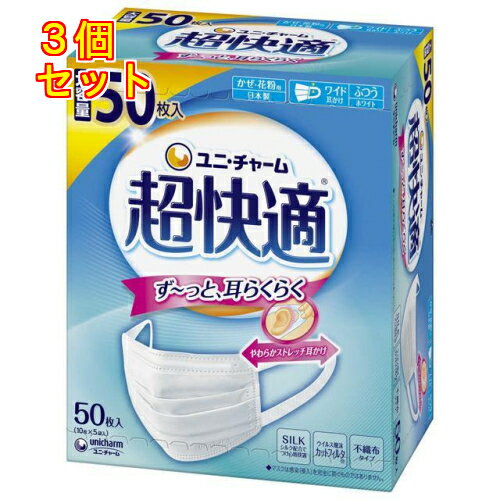 [ユニ・チャーム] 3個セット 超快適マスク プリーツタイプ ふつう 50枚入×3 マスク 不織布・・・