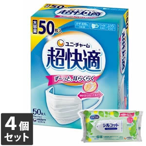 【今ならシルコットウェットプレゼント】4個セット ユニ・チャーム 超快適マスク プリーツタイプ ふつ・・・