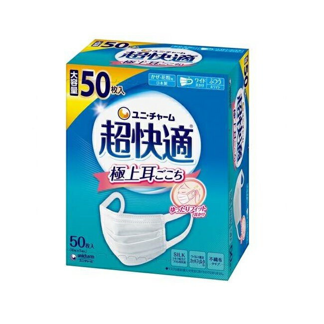 【送料込】ユニ・チャーム 超快適マスク 極上耳ごこち ふつう 50枚入 ホワイト 1個・・・