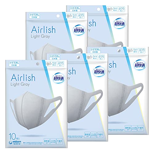 【まとめ買い】超快適マスク エアリッシュ ライトグレー 風邪・花粉用 不織布マスク ふつうサイズ 5・・・