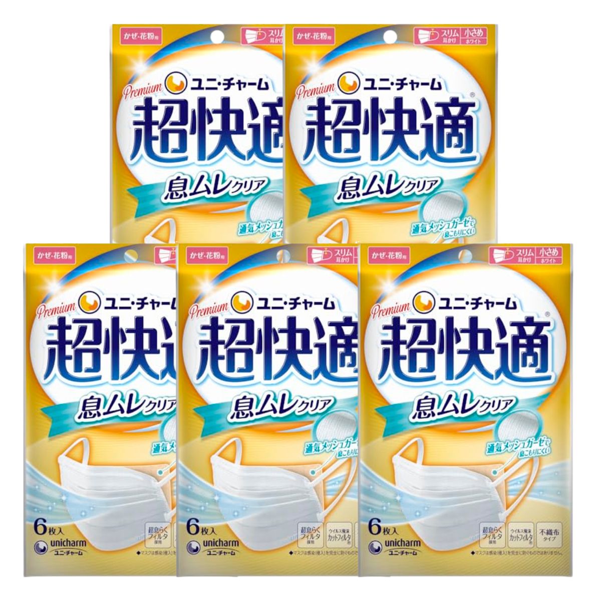 【5袋計30枚】ユニチャーム 超快適マスク 息ムレクリアタイプ 小さめ 6枚入・・・