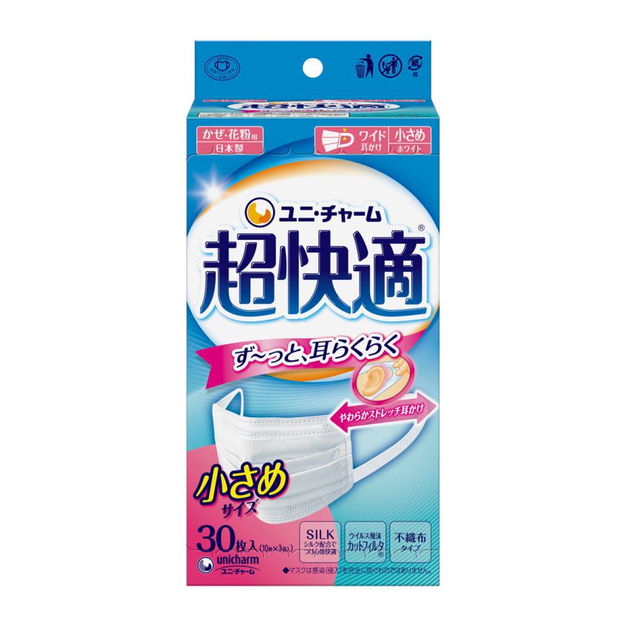 【送料込・まとめ買い×3個セット】ユニ・チャーム 超快適マスク 極上耳ごこち 小さめ 30枚入 ホワ・・・