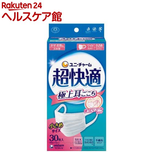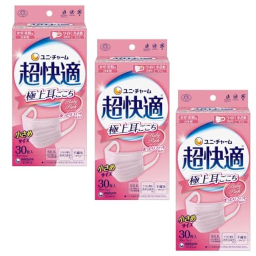 ユニ・チャーム 超快適マスク 極上耳ごこち かぜ・花粉用 ホワイト 小さめサイズ 30枚入り X3箱・・・