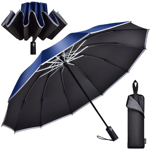 折り畳み傘ワンタッチ自動開閉 逆さ傘 16本骨 大きいサイズ 反射テープ メンズ レディース梅雨対策・・・