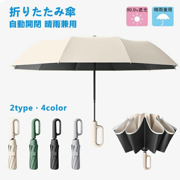 自動開閉 逆さ傘 晴雨兼用カラビナハンドル 折り畳み傘 軽い UVカットUPF50 紫外線遮断 メンズ レディース 軽量 大きめ ワンタッチ