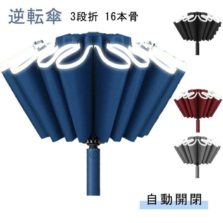 傘 折りたたみ傘 雨傘 12本骨 自動開閉 ライト付き 反射テープ付き 逆さ傘 完全遮光 軽量 UV・・・