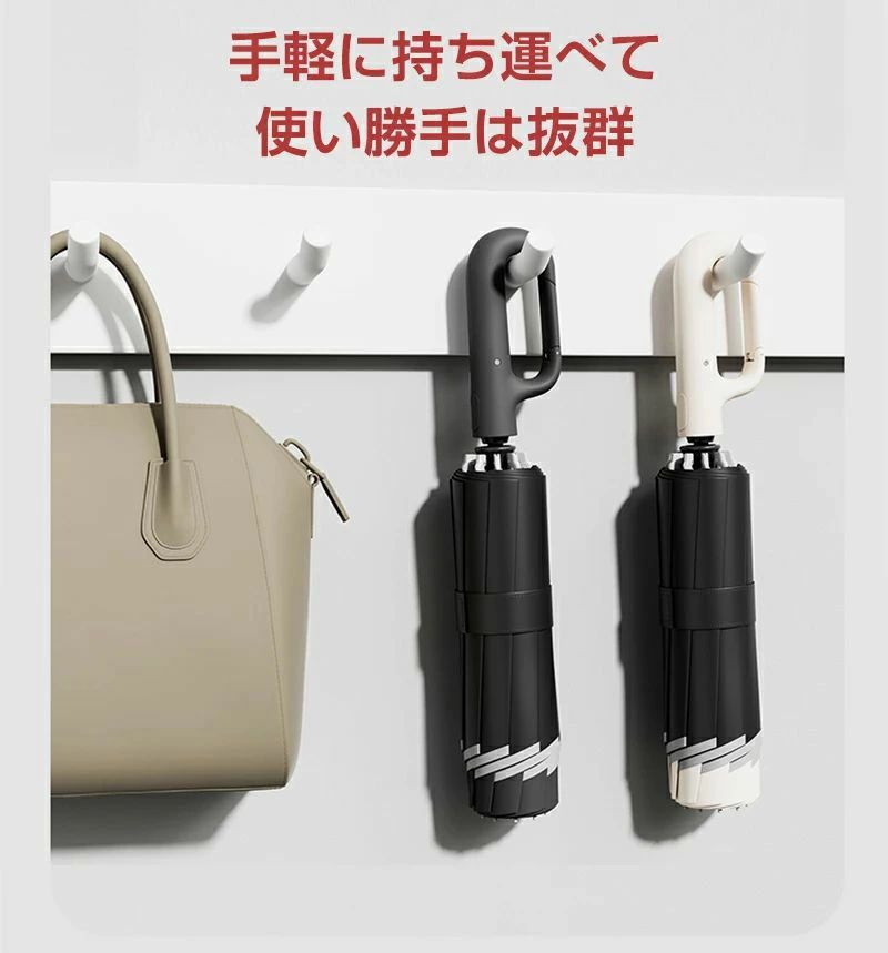 自動開閉 逆さ傘 晴雨兼用カラビナハンドル 折り畳み傘 軽い UVカットUPF50 紫外線遮断 メンズ レディース 軽量 大きめ ワンタッチ