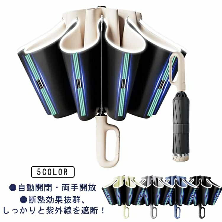 傘 折りたたみ傘 雨傘 12本骨 自動開閉 ライト付き 反射テープ付き 逆さ傘 完全遮光 軽量 UV・・・