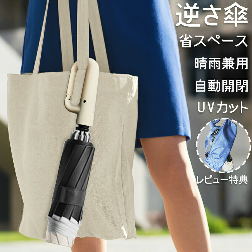 自動開閉逆さ傘晴雨兼用カラビナハンドル折り畳み傘軽いUVカットUPF50紫外線遮断メンズレディース軽量大きめワンタッチ