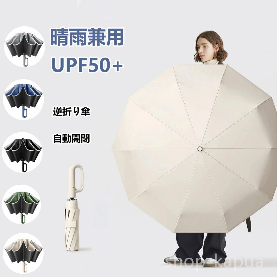 折りたたみ傘 雨傘 日傘 ワンタッチ 自動開閉 晴雨兼用 10本骨 逆折り 撥水加工