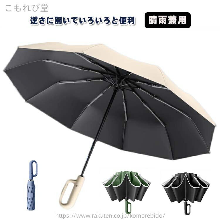 自動開閉 折りたたみ 傘 逆さ カラビナハンドルつき 逆折りタイ